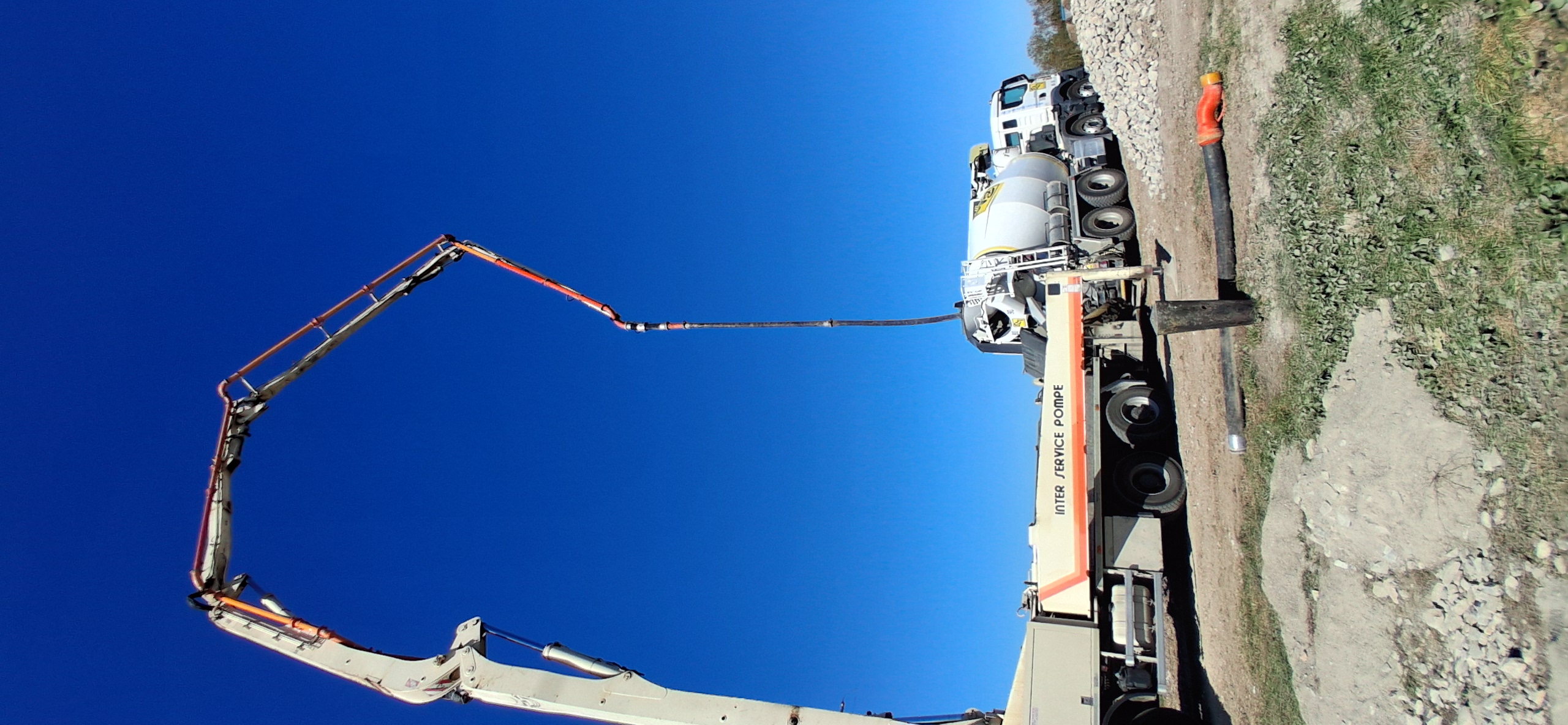 Une fois tous les filets mis en place le long de la fosse et de l'affouillement, un béton prise mer prêt à l'emploi (environ 6 m³) transporté par une pompe depuis la berge est injecté dans la cavité avec l'aide d'un plongeur scaphandrier.