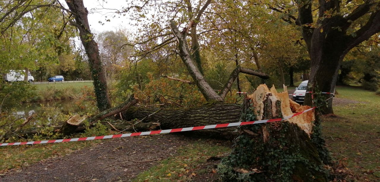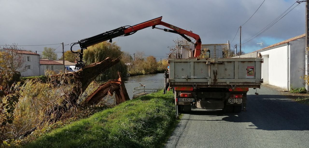 Le 23 octobre dernier, la tempête Benjamin a traversé le marais occasionant la chute de nombreuses branches et arbres dans les voies d'eau et sur les chemins de halage du marais.