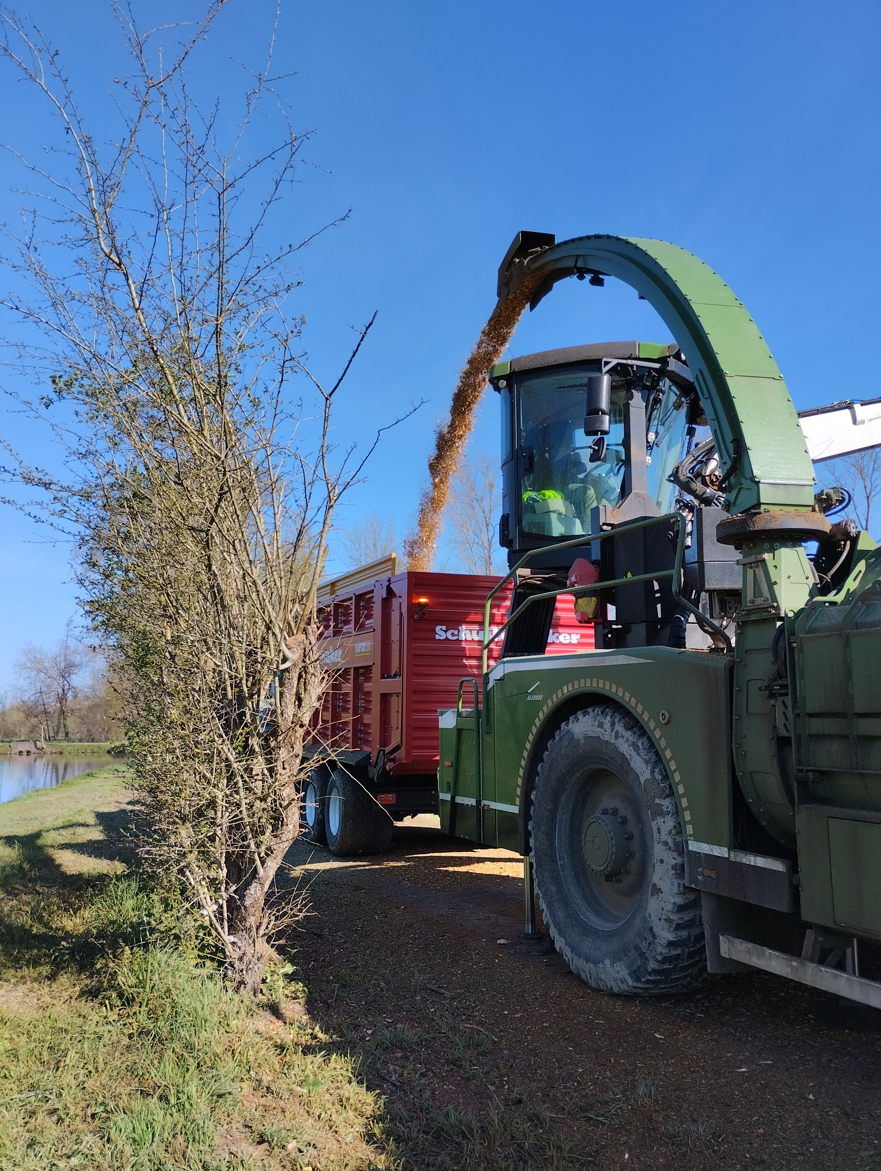Les produits de coupe sont évacués et broyés pour la production de copeaux pour les chaudières à bois.
